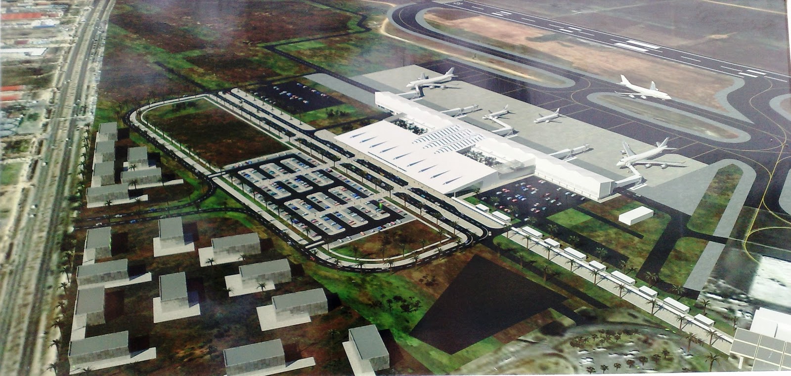Muonekano wa jengo,njia za ndege na maegesho ya magari.
